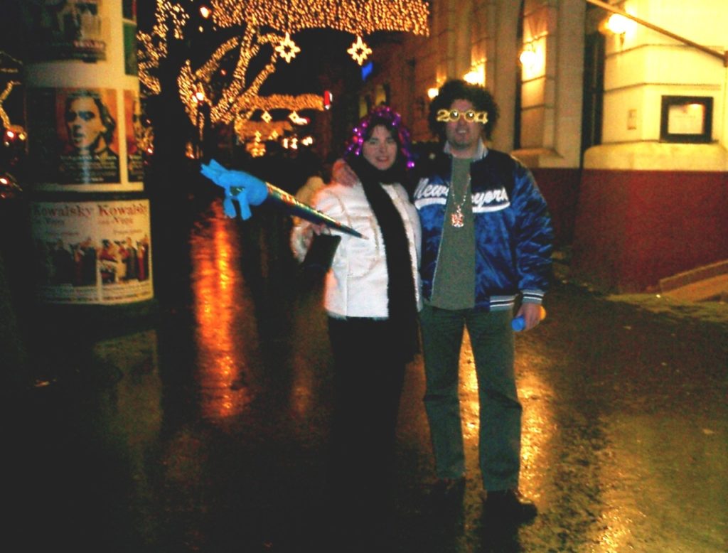 Cookie wore a black curly wig, a satiny blue NY Yankees jacket (which thrilled Russian passersby immensely), and large gaudy fake diamond jewelry with glasses in the shape of 2004. I had my horn and donned a pink tinsel wig. We spent the night walking around the city—past people wearing Viking helmets and court jester hats. They hit us on the head with their horns, and we did it right back. We joined people who were dancing to a live band playing songs from the ‘60s—from Beatles tunes to Hungarian rock and roll. We only stopped moving long enough buy more boiled wine from women with crock pots on folding tables along the street. We knew it was midnight when, as we walked past the Opera,the Hungarian national anthem began playing on a nearby car radio. It was 2004 in Hungary, six hours before the ball would drop in Times Square. Within an hour, the city was all but empty, with a mess of broken bottles strewn throughout the open plazas (which were cleaned up the next morning). Cookie and I walked around looking for a bar to stop in to have a proper drink, but the city was ready to sleep. At last, in the cold empty streets of Pest, the lights of an Irish bar beckoned. We went in, ordered a bit of liquid warmth and chatted with a group of English-speaking people from the U.S., the UK and Ireland. Staying just long enough for one cocktail, we headed out to find our car.